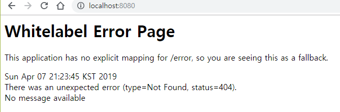 localhost:8080에 접속해서 다음과 같이 나오면 성공이다.