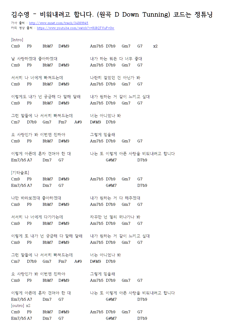 다시 곡 연습 중에 잘못된 부분이 있어서 수정하였습니다.