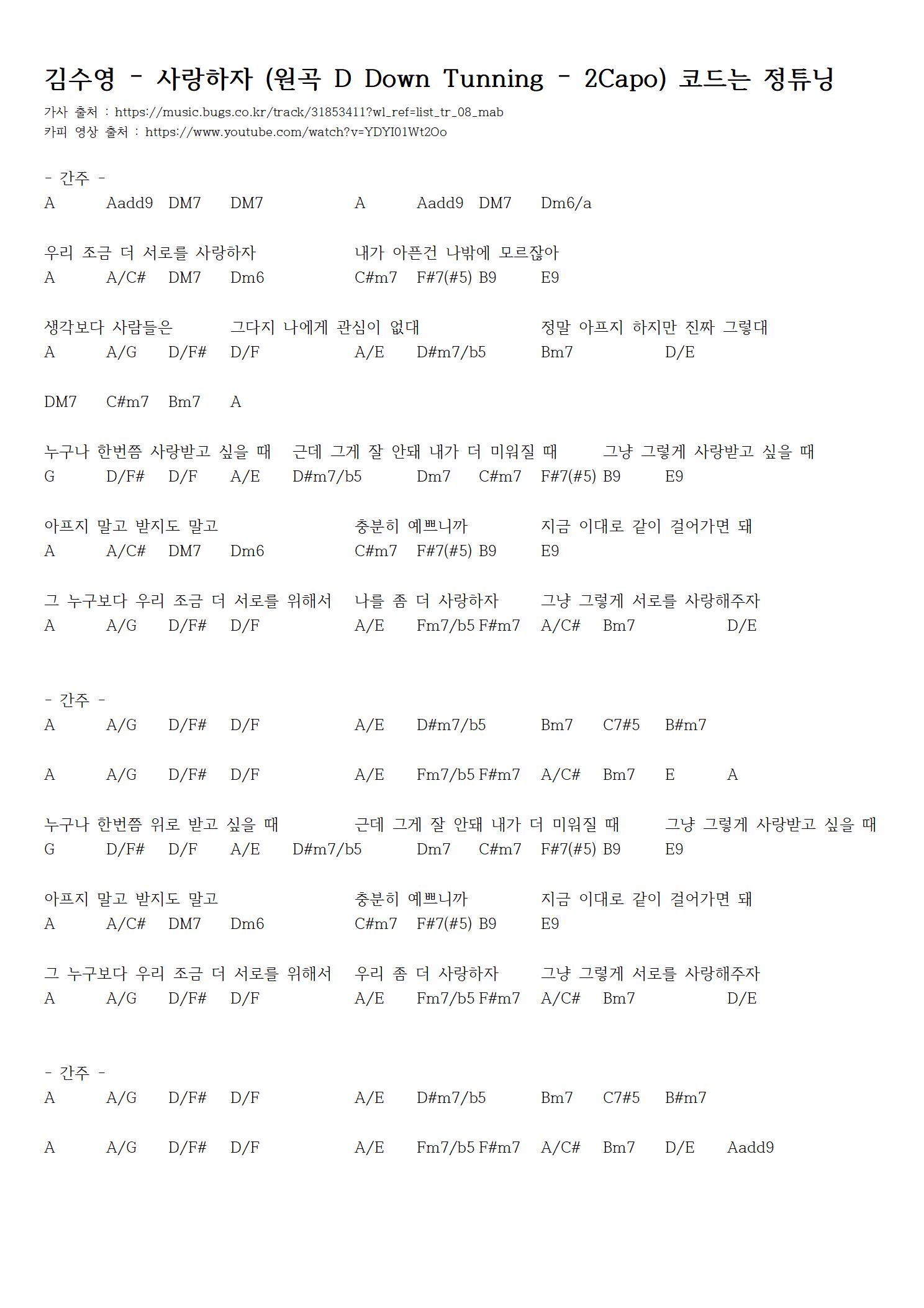 김재원님이 요청해주신 사랑하자 카피악보가 제작되었습니다!! 소리질러~~~~~