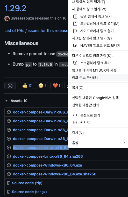 1. https://github.com/docker/compose/tags 접속