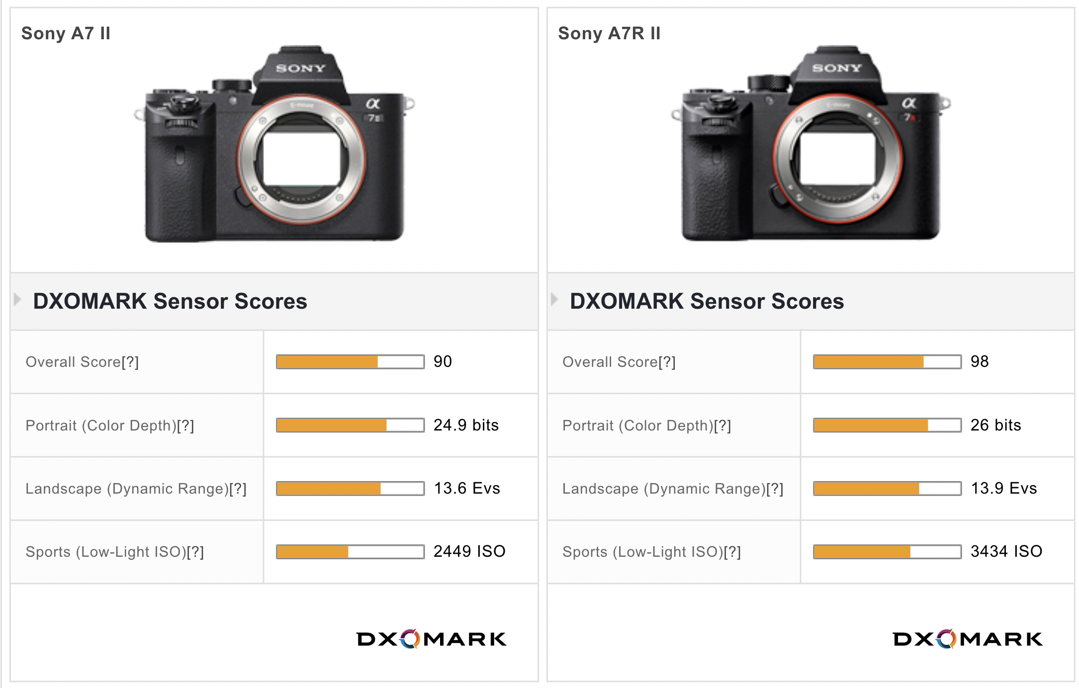 당장 DXOMARK 사이트에서 확인을 해봤는데 차이가 나는 부분은 iso 상용 감도와 컬러 색상 깊이 정도이고 DR은 큰 차이는 없었다....